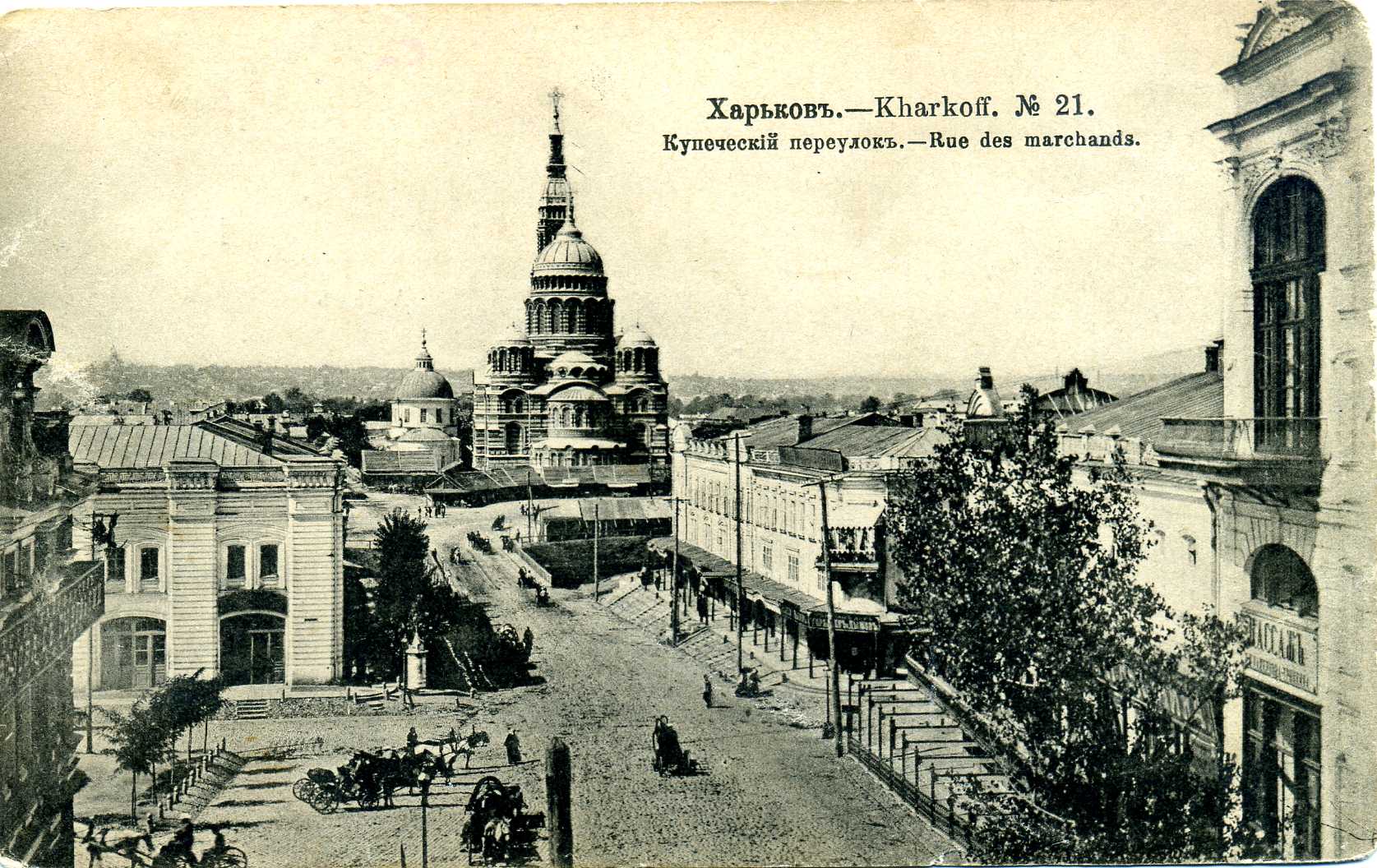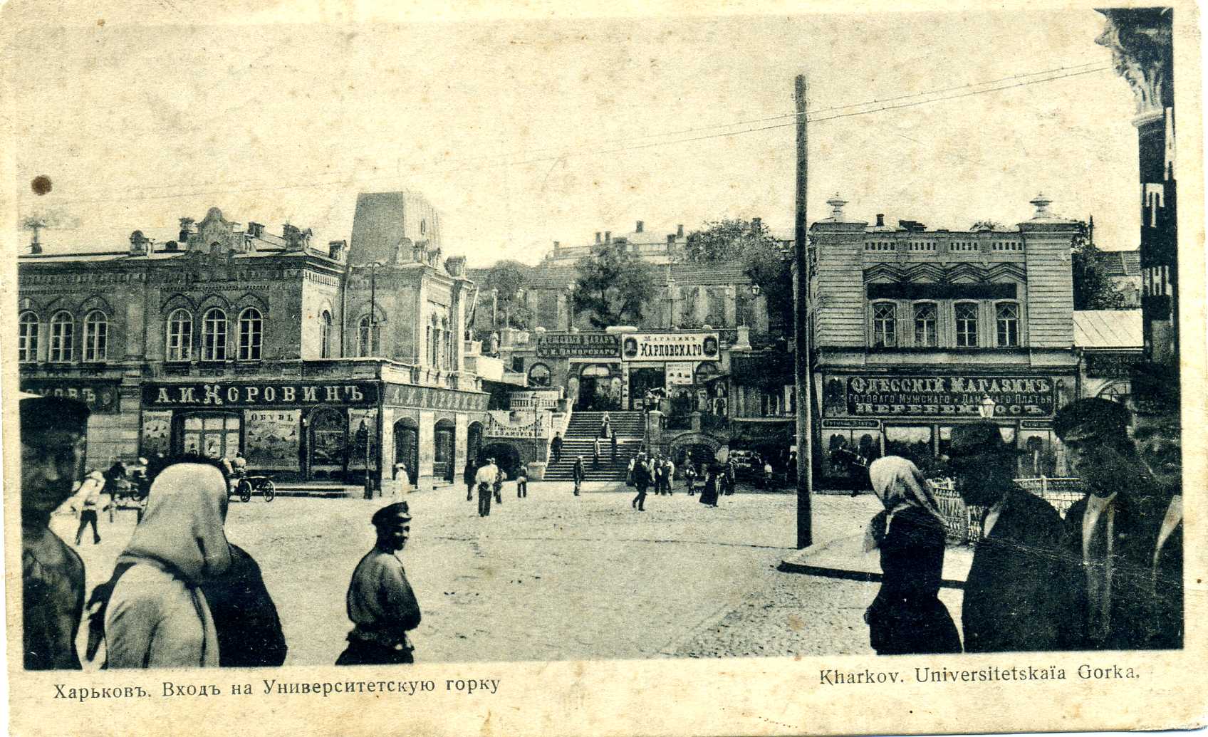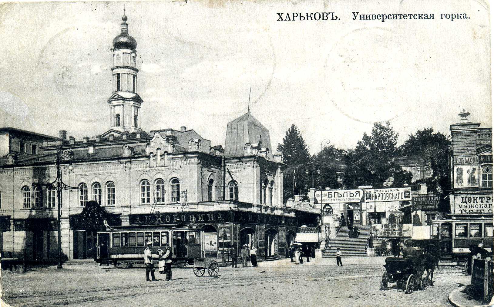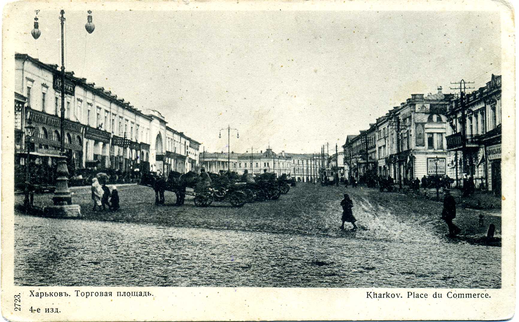 Своєрідний екскурс в історію улюбленого багатьма, славнозвісного міста Харкова початку ХХ ст. можна здійснити, переглянувши невеличку збірку поштових листівок, що зберігаються у фондах відділу образотворчих мистецтв Національної бібліотеки України імені В. І. Вернадського. Листівки зі світлинами розмаїтих краєвидів Харкова, що випускалися відомими вітчизняними та закордонними видавництвами і друкарнями, серед яких Фототипія Шерер, Набгольц і Ко, Акціонерне товариство Гранберг, Контрагенство «Друку», Контрагенство О. С. Суворіна і Ко, Община Св. Євгенії, Фототипія і типографія А. Ф. Дреслера, зберегли для нащадків іконографічну інформацію про урбаністичне середовище. На поштових листівках, презентованих на виставці, постають харківські вулиці й площі, адміністративні та приватні будівлі, учбові заклади, музеї й театри, сакральні споруди, міст через річку Лопань – все те. що у своїй сукупності передає особливості місцевого колориту, визначає неповторність і своєрідність давнього міста. Світлини на листівках часто уміщують атрибути повсякденного життя дореволюційного міста – вуличні сцени з типажами міських і сільських жителів, рекламні вивіски приватних магазинів, юридичних контор та ремісничих лавок, які рясніють іменами їх власників, типовий для тих часів кінний та електричний транспорт тощо. Переглядаючи старі листівки, що зберегли відлуння епохи, яка відійшла в історію, ми маємо можливість простежити часові зміни або ж кардинальні трансформації багатьох відомих місць та знакових споруд Харкова. На поштівках початку ХХ ст. зафіксоване зображення важливого стратегічного об`єкта міста – харківського залізничного вокзалу. Історія його виникнення і побутування розпочалася 1869 року, коли поблизу підніжжя Холодної гори на Архієрейській леваді розташувалася перша споруда вокзалу, зведена архітектором А. А. Тоном. Пізніше, з розвитком залізниць у 1896–1901 роках, коли вокзал було розширено й модернізовано за проектами архітектора І. І. Загоскіна, а згодом – Ю. С. Цауне, він став одним з найбільших на той час у Російській імперії. Із плином часу будівля вдосконалювалася, поступово розширювалася територія вокзального комплексу, при якому у 1912 році функціонувала навіть школа з підготовки майбутніх залізничних телеграфістів. (іл. 1, 2) Одночасно зі спорудженням станції й вокзалу розпочалося формування Привокзальної площі, в центрі якої упродовж 1885–1886 років було побудовано Олександрівську каплицю (архітектор С. І. Загоскін), знесену в роки радянської влади. Відомо, що на початку XX ст. у Харкові існувало більше десяти каплиць, жодна з яких не збереглася до нашого часу. (іл. 3) Дореволюційне місто на старих поштівках вирізняє неповторна своєю архітектурною забудовою, камерна атмосфера харківських вулиць і площ. Приваблює своєю панорамністю загальний краєвид міста з Холодної гори, який прагнув побачити кожен, хто відвідував Харків у ті часи. (іл. 4). Листівки із зображенням Миколаївської площі (нині – Майдан Конституції) знайомлять нас із виглядом площі, яка виникла одночасно з харківською фортецею. У XVII столітті вона мала назву Ярмаркова, адже на ній щорічно проводився серпневий ярмарок. Від 1804 року площа отримала офіційне найменування – Миколаївська, на честь Миколаївської церкви, що бере свій початок із дерев'яного скиту, зб