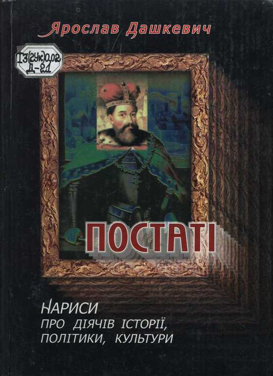 Постаті [Текст] : нариси про діячів історії, політики, культури / Я. Дашкевич ; упоряд. М. Капраль [та ін.] ; ред. кол. І. Вакарчук [та ін.] ; НАН України, Ін-т укр. археографії та джерелознав. ім. М. С. Грушевського. Львів. від-ня, Львів. нац. ун-т ім. Івана Франка. - Л. : [б.в.], 2006. - 704 с.