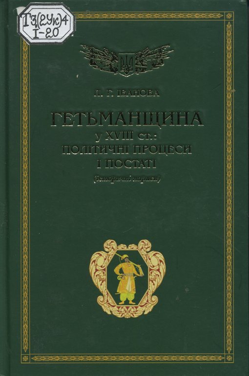 Гетьманщина у XVIII ст.: політичні процеси і постаті [Текст] : (іст. нариси) / Іванова Людмила Георгіївна ; Нац. пед. ун-т ім. М. П. Драгоманова, Каф. історії України. - Київ ; Кам'янець-Подільський : Історія в книзі, 2016. - 185 с.