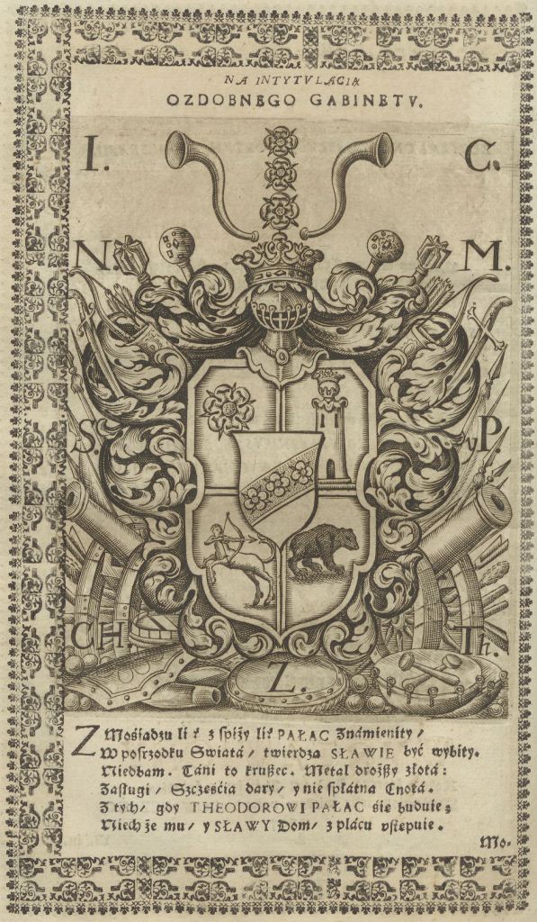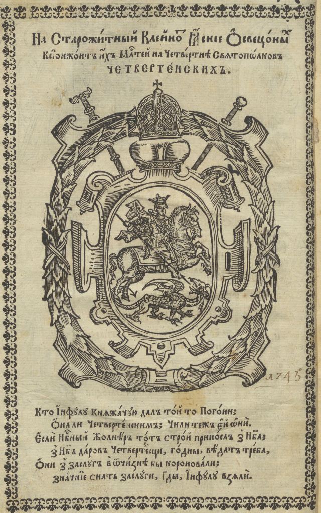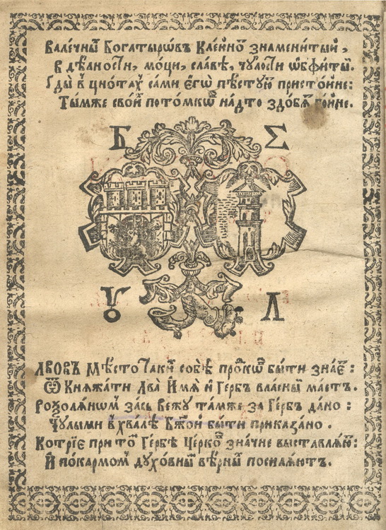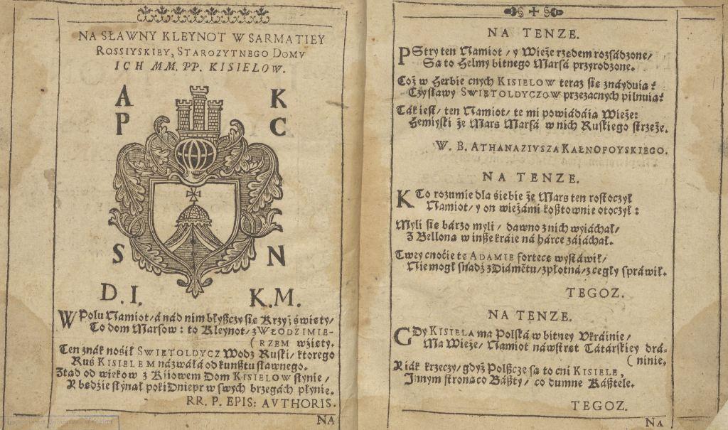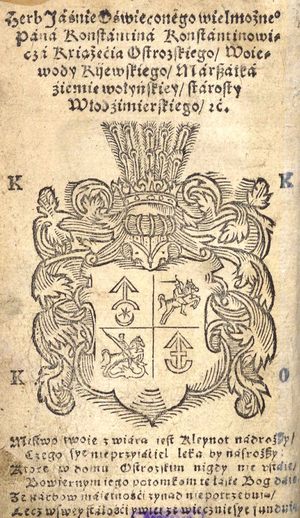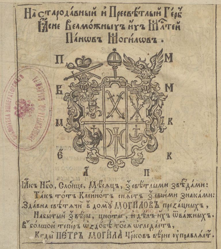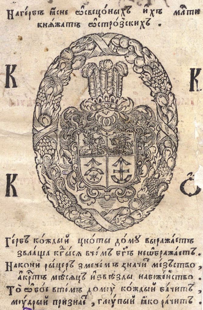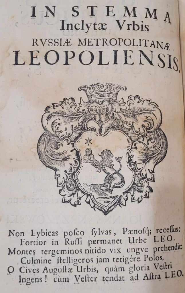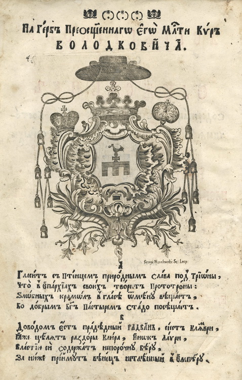 Геральдична поезія – жанр української літератури ранньомодерної доби, зародження та розвиток якого тісно пов’язаний з практикою книгодрукування. Відсутність централізованого фінансування видавничих підприємств, що діяли на теренах України в XVI–XVIII ст., спонукало друкарів до пошуку меценатської підтримки. Прикрашання книг зображеннями гербів заможних та впливових осіб стало дієвим способом подяки та заохочення виділяти кошти на потреби друкарень. Подяка меценатові висловлювалася у текстах присвят до видання, а шляхетність його походження підкреслювалася в текстах віршів до зображення родового герба. Хронологічно першим зразком україномовної геральдичної поезії, надрукованої на теренах України, став вірш на герб засновника острозької друкарні – Василя Костянтина Острозького, вміщений у виданні Біблії 1581 р. (іл. 1). Значний вплив Острозьких на розвиток книгодрукування сприяв тому, що вірші на герб цієї родини наприкінці XVI – в першому десятилітті XVII ст. прикрашали не лише видання Острозької друкарні (іл. 3), але й траплялися у литовських друках (іл. 2, 4). Входження українських, польських та литовських земель у межі єдиної держави, Речі Посполитої, сприяло формуванню тісних зв’язків між освітньо-культурними осередками Львова, Києва, Почаєва, Вільно, Єв’є, Кракова, Варшави та ін. Відтак до спадщини української літератури зараховуються не лише геральдичні вірші, надруковані у складі українських книг, але усі поетичні тексти, дотичні до української культури, незалежно місця друку першоджерела. Вкрай неоднорідною є й мова українських геральдичних віршів. Поряд із текстами староукраїнською літературною мовою, що прикрашали церковнослов’янські та староукраїнські друки, для виданих в Україні латиномовних та польськомовних видань писалися вірші латинською та польською мовами. До ранніх зразків української геральдичної поезії належать вірші на герб Сапігів, Огінських, Вишневецьких і Воловичів (іл. 5, 7–9). Довготривалу впливовість магнатської родини Сапігів на культурне життя засвідчує презентований в експозиції латиномовний вірш із почаївського видання 1748 р. (іл. 6). Розквіт української геральдичної поезії пов’язаний із діяльністю друкарні Києво-Печерської лаври. Протягом 1620–1640-их рр. у складі лаврських видань було опубліковано довершені за формою зразки геральдичної поезії, присвячені світським представникам шляхти та архімандритам святої обителі. Серед них вірші на герб родин Долматів (іл. 12–13), Балабанів (іл. 11), Стеткевичів (іл. 15), Замойських (іл.17), Святополків Четвертинських (іл. 18), Киселів (іл. 25), Проскурів Сущанських (іл. 27). Непересічну роль у розвитку української геральдичної поезії відігравала також друкарня Львівського Успенського братства. Одне з найошатніших видань братської друкарні початку XVII ст., видання «Книги о священстві» Іоанна Златоуста 1614 р., вшановує рід Балабанів (іл. 10). Бібліографічною рідкістю є на сьогодні вірші, що містилися на звороті титульного аркуша в різних варіантах примірників із тиражу Октоїха 1630 р. друкарні Львівського братства. В експозиції представлено вірш Мирону Бернавському (іл. 16), проте в тиражі цього видання були також вірші на герб Олександра Балабана, Катерини Боговитинової Ярмолинської та Мойсея Могили. Протягом XVII ст. велика кількість геральдичних віршів публікувалас