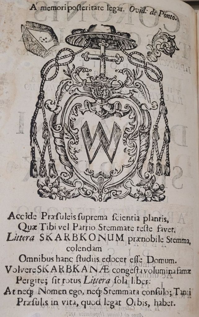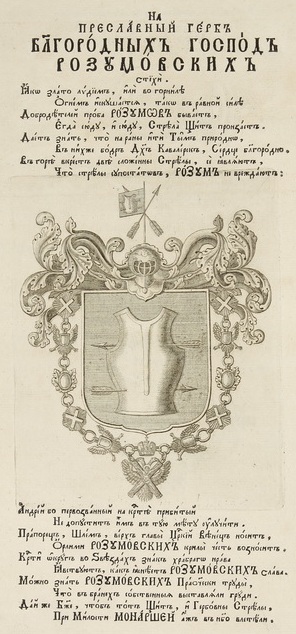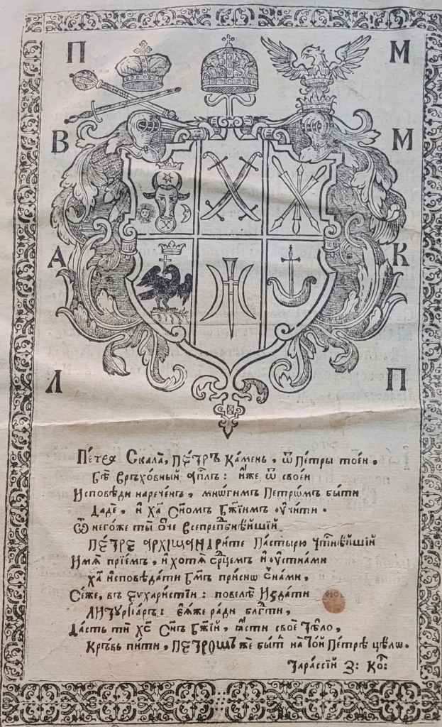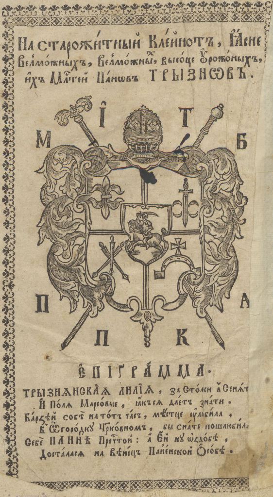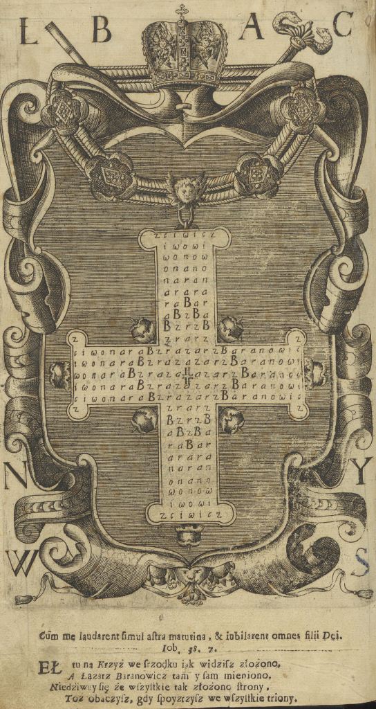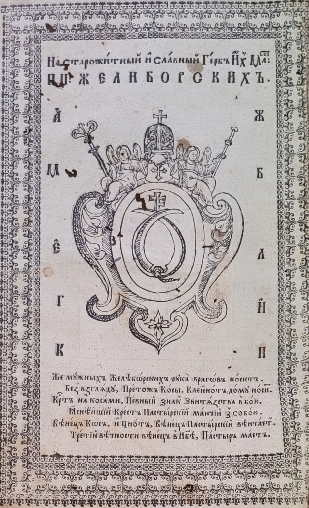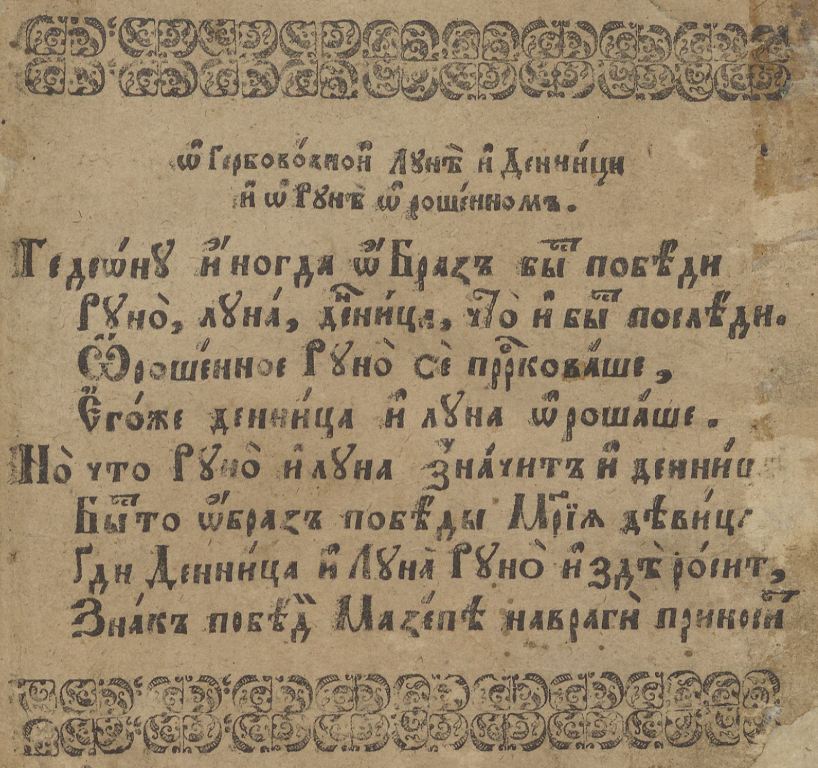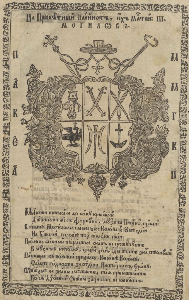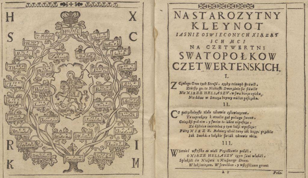 Геральдична поезія – жанр української літератури ранньомодерної доби, зародження та розвиток якого тісно пов’язаний з практикою книгодрукування. Відсутність централізованого фінансування видавничих підприємств, що діяли на теренах України в XVI–XVIII ст., спонукало друкарів до пошуку меценатської підтримки. Прикрашання книг зображеннями гербів заможних та впливових осіб стало дієвим способом подяки та заохочення виділяти кошти на потреби друкарень. Подяка меценатові висловлювалася у текстах присвят до видання, а шляхетність його походження підкреслювалася в текстах віршів до зображення родового герба. Хронологічно першим зразком україномовної геральдичної поезії, надрукованої на теренах України, став вірш на герб засновника острозької друкарні – Василя Костянтина Острозького, вміщений у виданні Біблії 1581 р. (іл. 1). Значний вплив Острозьких на розвиток книгодрукування сприяв тому, що вірші на герб цієї родини наприкінці XVI – в першому десятилітті XVII ст. прикрашали не лише видання Острозької друкарні (іл. 3), але й траплялися у литовських друках (іл. 2, 4). Входження українських, польських та литовських земель у межі єдиної держави, Речі Посполитої, сприяло формуванню тісних зв’язків між освітньо-культурними осередками Львова, Києва, Почаєва, Вільно, Єв’є, Кракова, Варшави та ін. Відтак до спадщини української літератури зараховуються не лише геральдичні вірші, надруковані у складі українських книг, але усі поетичні тексти, дотичні до української культури, незалежно місця друку першоджерела. Вкрай неоднорідною є й мова українських геральдичних віршів. Поряд із текстами староукраїнською літературною мовою, що прикрашали церковнослов’янські та староукраїнські друки, для виданих в Україні латиномовних та польськомовних видань писалися вірші латинською та польською мовами. До ранніх зразків української геральдичної поезії належать вірші на герб Сапігів, Огінських, Вишневецьких і Воловичів (іл. 5, 7–9). Довготривалу впливовість магнатської родини Сапігів на культурне життя засвідчує презентований в експозиції латиномовний вірш із почаївського видання 1748 р. (іл. 6). Розквіт української геральдичної поезії пов’язаний із діяльністю друкарні Києво-Печерської лаври. Протягом 1620–1640-их рр. у складі лаврських видань було опубліковано довершені за формою зразки геральдичної поезії, присвячені світським представникам шляхти та архімандритам святої обителі. Серед них вірші на герб родин Долматів (іл. 12–13), Балабанів (іл. 11), Стеткевичів (іл. 15), Замойських (іл.17), Святополків Четвертинських (іл. 18), Киселів (іл. 25), Проскурів Сущанських (іл. 27). Непересічну роль у розвитку української геральдичної поезії відігравала також друкарня Львівського Успенського братства. Одне з найошатніших видань братської друкарні початку XVII ст., видання «Книги о священстві» Іоанна Златоуста 1614 р., вшановує рід Балабанів (іл. 10). Бібліографічною рідкістю є на сьогодні вірші, що містилися на звороті титульного аркуша в різних варіантах примірників із тиражу Октоїха 1630 р. друкарні Львівського братства. В експозиції представлено вірш Мирону Бернавському (іл. 16), проте в тиражі цього видання були також вірші на герб Олександра Балабана, Катерини Боговитинової Ярмолинської та Мойсея Могили. Протягом XVII ст. велика кількість геральдичних віршів публікувалас