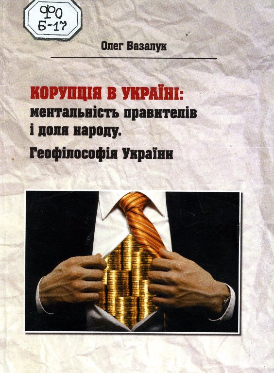 Корупція в Україні: ментальність правителів і доля народу. Геофілософія України [Текст] / Олег Базалук. - Київ : МФКО, 2016. - 253 с.