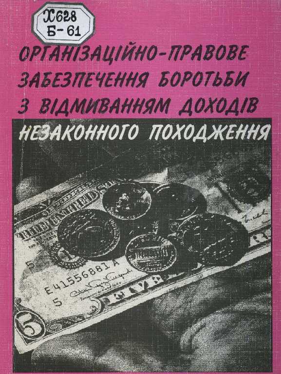 Організаційно-правове зебезпечення боротьби з відмиванням доходів незаконного походження [Текст] / В. Т. Білоус [та ін] ; заг. ред. П. В. Мельник ; Державна податкова адміністрація України, Академія держ. податкової служби України. - К. : [б.в.], 2001. - 137 с.