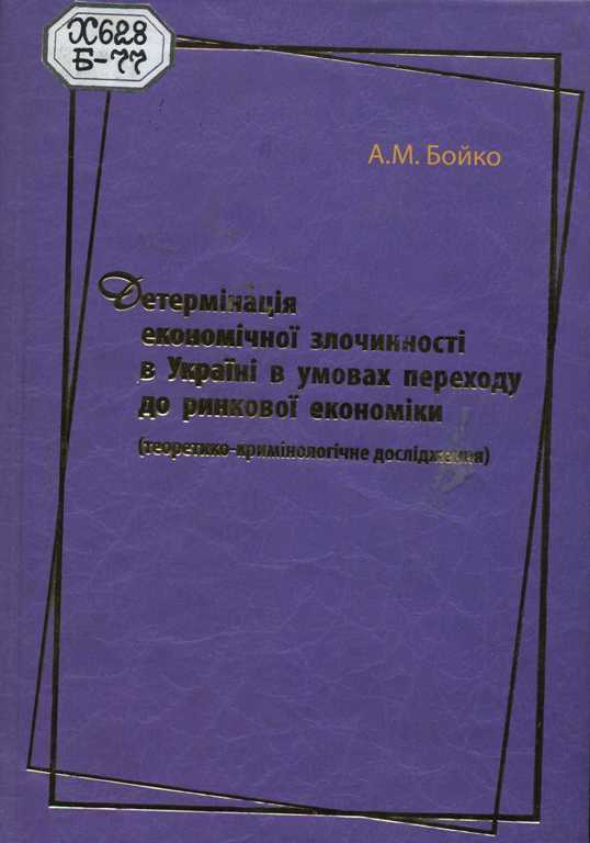 Детермінація економічної злочинності в Україні в умовах переходу до ринкової економіки (теоретико-кримінологічне дослідження) [Текст] : монографія / А. М. Бойко ; Львівський національний ун-т ім. Івана Франка. - Л. : ВЦ ЛНУ ім. І.Франка, 2008. - 380 с.