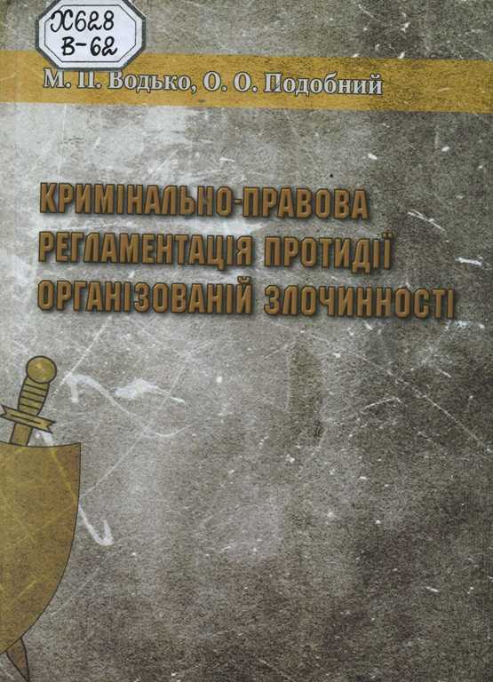 Кримінально-правова регламентація протидії організованій злочинності [Текст] : монографія / М. П. Водько, О. О. Подобний ; Одес. держ. ун-т внутр. справ. - О. : Юридична література, 2010. - 192 с.