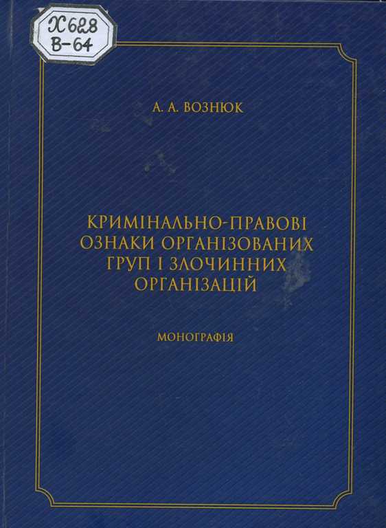 Кримінально-правові ознаки організованих груп і злочинних організацій [Текст] : монографія / Вознюк Андрій Андрійович ; Нац. акад. внутр. справ. - Київ : НАВС, 2015. - 191 с.