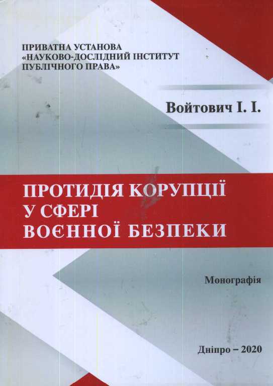 Протидія корупції у сфері воєнної безпеки [Текст] : монографія / І. І. Войтович ; Приват. установа "НДІ публ. права". - Дніпро : Біла К.О. [вид.], 2020. - 391 с.
