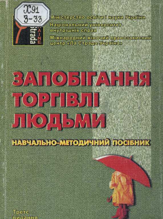 14. Запобігання торгівлі людьми [Текст] : навч.-метод. посіб. / О. Г. Горбунова [та ін] ; Національний ун-т внутрішніх справ, Міжнародний жіночий правозахисний центр "Ла Страда - Україна". - 3.вид., доп. та виправ. - К. ; Х. : Видавництво Національного ун-ту внутрішніх справ, 2001. - 176 с.