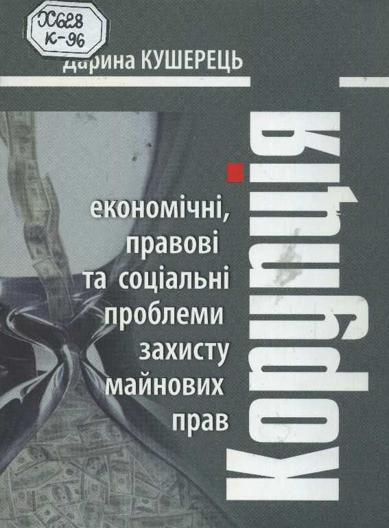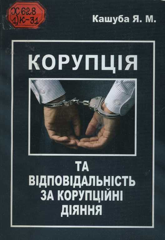 Корупція та відповідальність за корупційні діяння [Текст] / Я. М. Кашуба ; Ін-т соціогуманіт. проблем людини Захід. наук. центру НАН України і МОН України, Голов. упр. освіти і науки Львів. обл. держ. адмін., Центр єднання європ. молоді "За спільне майбутнє". - Л. : ПАІС, 2007. - 110 с.