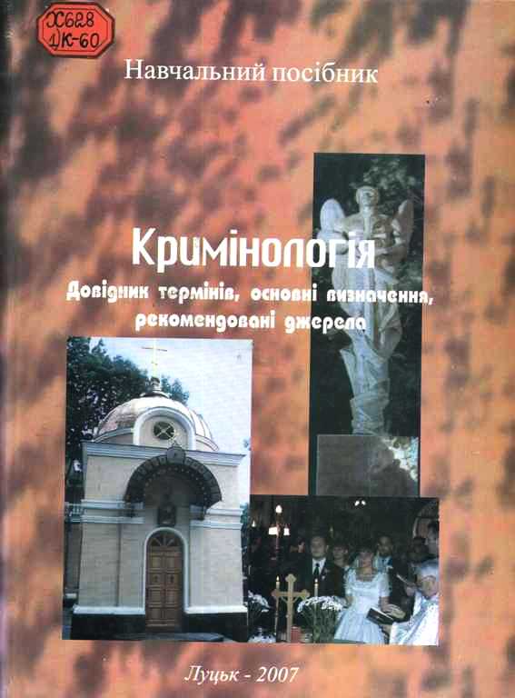 Кримінологія : довідник термінів, основні визначення, рекомендовані джерела [Текст] : навч. посібник / О. Г. Колб [и др.] ; ред. О. Г. Колб. - Луцьк : РВВ "Вежа" Волинського держ. ун-ту ім. Лесі Українки, 2007. - 467 с.