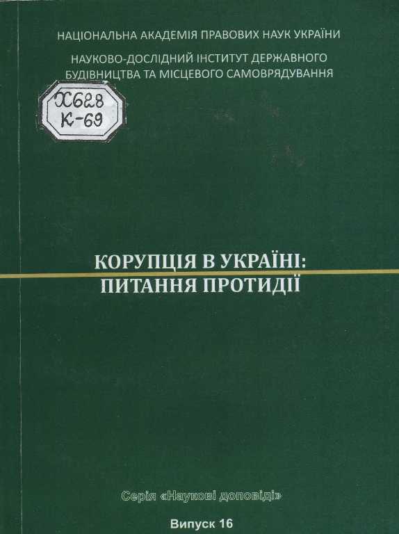 Протидія корупційній злочинності в Україні у сучасний період [Текст] : монографія / О. Ю. Бусол ; Нац. акад. наук України, Ін-т держави і права ім. В. М. Корецького. - Київ : Ін Юре, 2014. - 562, [1] с.