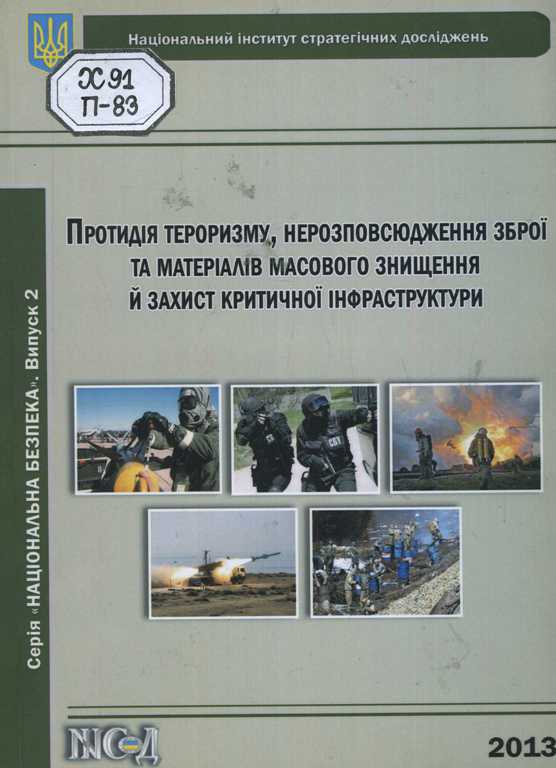 42. Протидія тероризму, нерозповсюдження зброї та матеріалів масового знищення й захист критичної інфраструктури [Текст] : зб. матеріалів засідань Міжвідом. експерт. робоч. групи, створеної при НІСД / [за ред. О. Д. Маркєєвої, Ю. М. Скалецького] ; Нац. ін-т стратег. дослідж. - К. : НІСД, 2013. - 101 с.