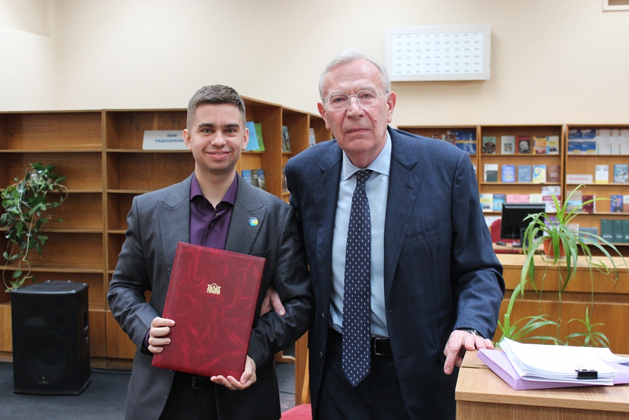 Академік НАН України В.А. Смолій вручив дипломи і грамоти лауреатам премій НАН України для молодих вчених і студентів закладів вищої освіти.