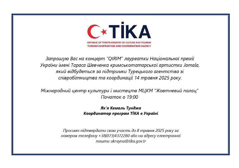 Національна бібліотека України імені В. І. Вернадського приділяє особливу увагу розвитку міжнародного співробітництва, зокрема зміцненню партнерських зв’язків з Турецькою Республікою та співпраці з організаціями, які представляють Туреччину на території України. У межах українсько-турецької співпраці за офіційним запрошенням пана Ях’я Кемаля Тунджі, координатора програм Турецького агентства зі співробітництва та координації (TİKA) в Україні, представники НБУВ долучилися до культурної події – концерту QIRIM, що відбувся 14 травня 2025 року у Міжнародному центрі культури і мистецтв (МЦКМ) "Жовтневий палац" у Києві.