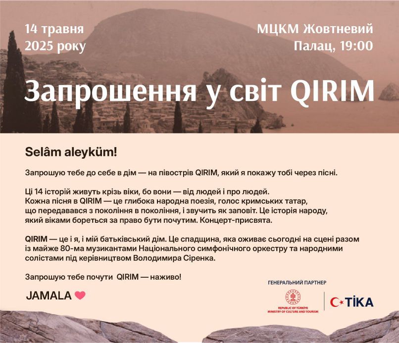 Масштабний концерт QIRIM за участі української співачки кримськотатарського походження, народної артистки України, лауреатки Національної премії України імені Тараса Шевченка та переможниці пісенного конкурсу "Євробачення-2016" Джамали мав значуще культурне і символічне значення. У програмі прозвучали 14 композицій з однойменного альбому, що відображає багатогранну музичну спадщину кримських татар, а також культова пісня «1944» у супроводі Національного симфонічного оркестру України під керівництвом маестро Володимира Сіренка. Особливо зворушливим моментом концерту став дует співачки з її батьком Алімом Джамаладіновим.