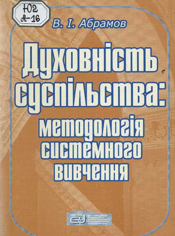 Духовність суспільства: методологія системного вивчення [Текст] / В. І. Абрамов ; Київський національний економічний ун-т. - К. : КНЕУ, 2004. - 235 с.