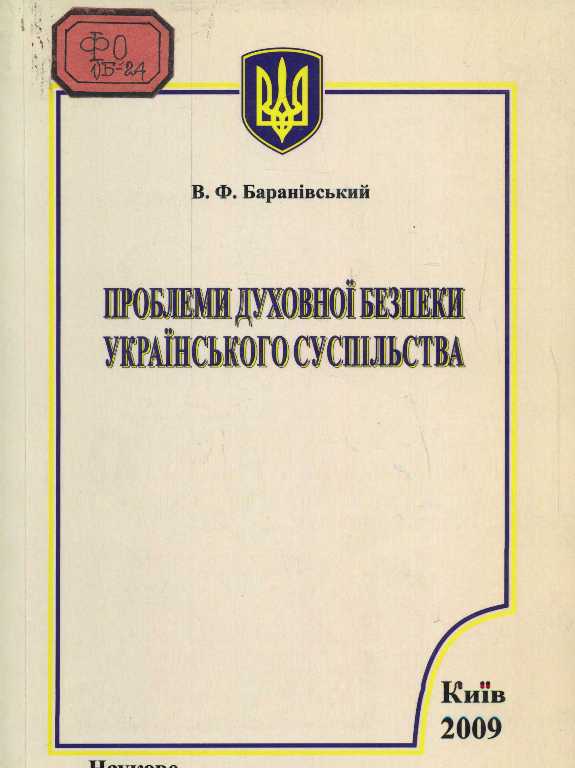 Проблеми духовної безпеки українського суспільства [Текст] : зб. наук. ст. / В. Ф. Баранівський. - К. : ПП Ульянич В.І., 2009. - 160 c.