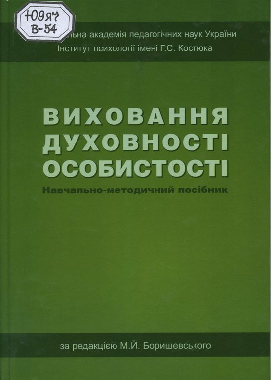 7. Виховання духовності особистості [Текст] : навч.-метод. посіб. / [Боришевський М. Й. та ін.] ; заг. ред. М. Й. Боришевського ; Нац. акад. пед. наук України, Ін-т психології ім. Г. С. Костюка. - К. : [б. в.], 2013. - 103 с.