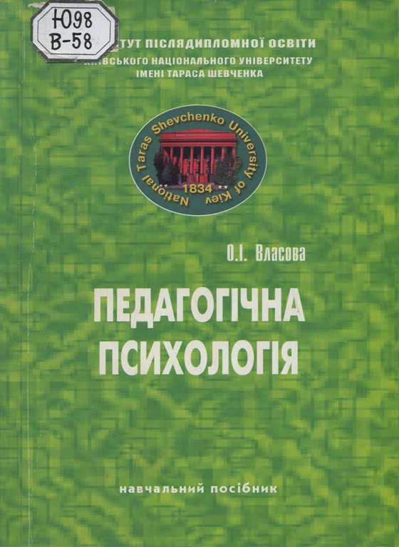 Педагогічна психологія [Текст] : навч. посіб. / О. І. Власова ; Інститут післядипломної освіти. Факультет соціології та психології Київського національного ун-ту ім. Тараса Шевченка. - К. : [б.в.], 2001. - 247 с.