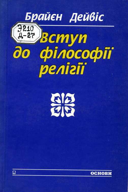Вступ до філософії релігії [Текст] / Б. Дейвіс ; пер. з англ. І. Гарник. - К. : Основи, 1996. - 269 с.