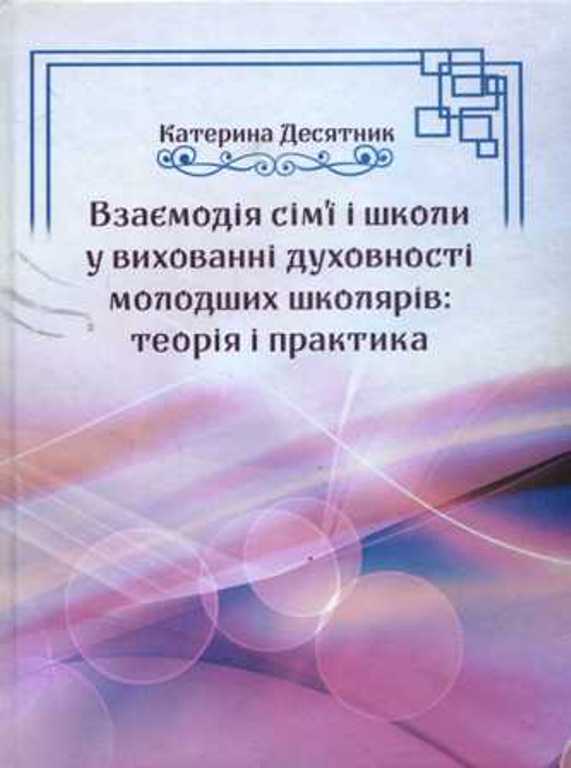Взаємодія сім'ї і школи у вихованні духовності молодших школярів: теорія і практика [Текст] : монографія / Катерина Десятник ; Східноєвроп. нац. ун-т ім. Лесі Українки. - Луцьк : Волин. обл. друк., 2020. - 214 с.