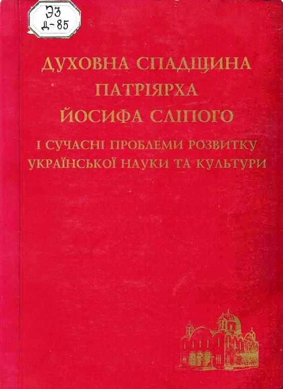 15. Духовна спадщина Патріярха Йосифа Сліпого і сучасні проблеми розвитку української науки та культури [Текст] : зб. наук. пр. / відп. ред. А. Рудницький. - Л. : Вид-во держ. ун-ту "Львівська політехніка", 2000. - 264 с. - (Видання Релігійного Товариства Українців Католиків США "Свята Софія". Представництво в Україні. Наукова серія ; 1).