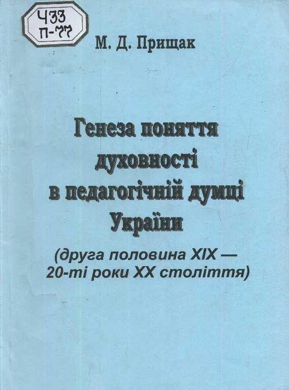 Генеза поняття духовності в педагогічній думці України (друга половина ХІХ-20-ті роки ХХ століття) [Текст] : монографія / М. Д. Прищак ; Вінницький національний технічний ун-т. - Вінниця : УНІВЕРСУМ-Вінниця, 2008. - 172 c.