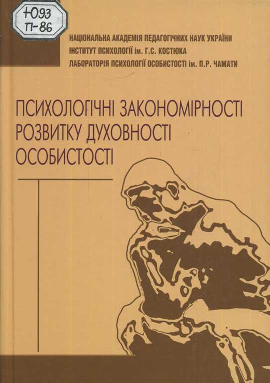 37. Психологічні закономірності розвитку духовності особистості [Текст] : монографія / [М. Й. Боришевський та ін. ; за заг. ред. М. Й. Боришевського] ; Нац. акад. пед. наук України, Ін-т психології ім. Г. С. Костюка, Лаб. психології особистості ім. П. Р. Чамати. - К. : Педагогічна думка, 2011. - 199 с.