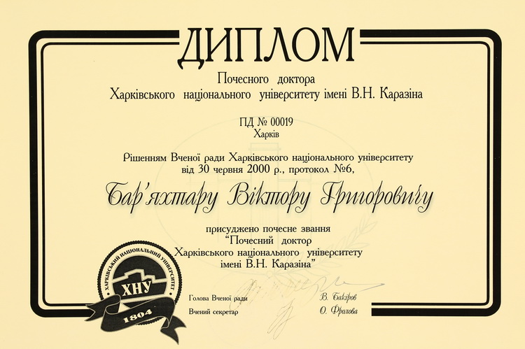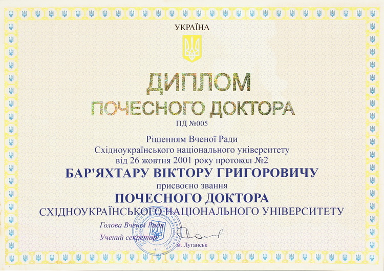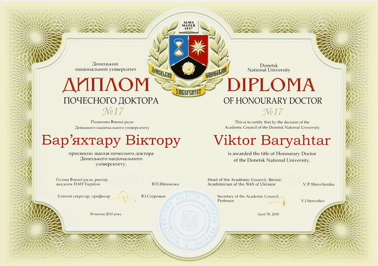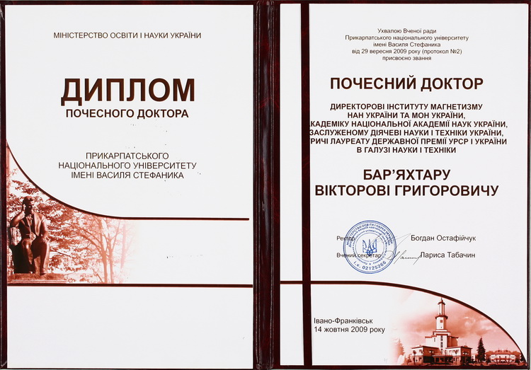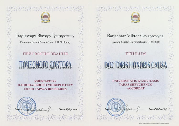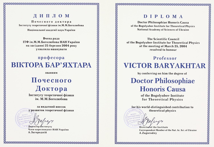 Зв’язки з вищими навчальними закладами освіти України демонструють дипломи про присвоєння почесного доктора: Харківського національного університету імені В. Н. Каразіна (2000), Східноукраїнського національного університету (2001), Інституту теоретичної фізики ім. М. М. Боголюбова (2004), Прикарпатського національного університету імені Василя Стефаника (2009), Київського національного університету імені Тараса Шевченка (2010), Донецького національного університету (2010).