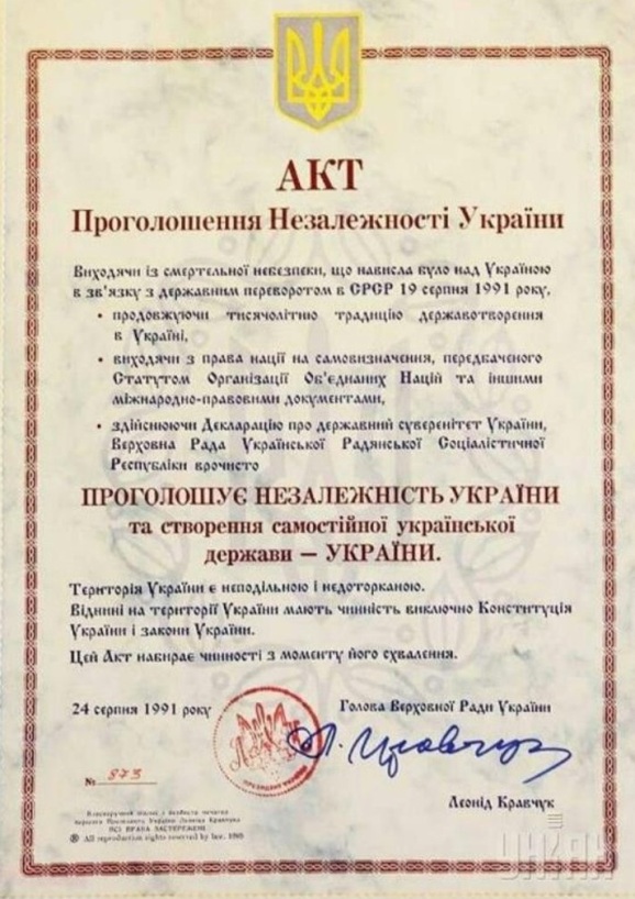 24 серпня Україна відзначає 34-ту річницю від дня проголошення своєї незалежності. Саме 24 серпня 1991 року на позачерговій сесії Верховної Ради України 346 депутатів проголосували за ухвалення Акту проголошення незалежності України. Документ фактично зафіксував створення самостійної Української держави. Тоді ж було прийняте рішення про проведення 1 грудня 1991 року Всеукраїнського референдуму на підтвердження Акта проголошення незалежності України. І 90,32% українського народу підтримали цей документ та висловили бажання жити у вільній країні.