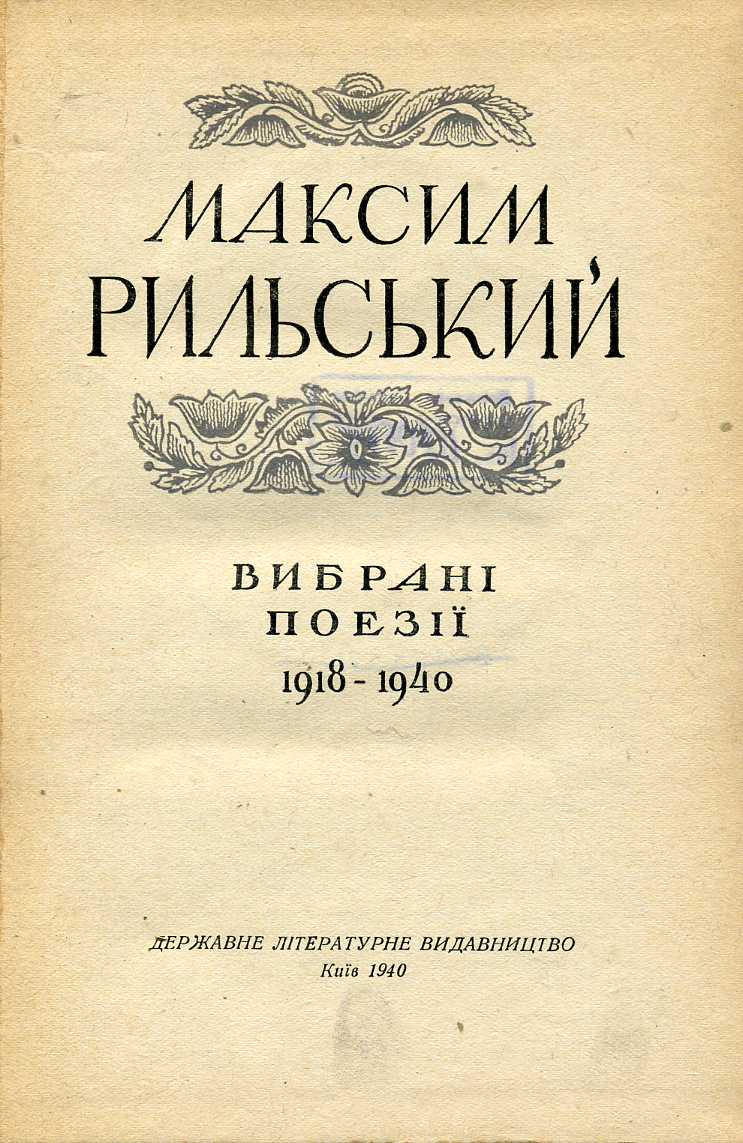 7.Вибрані поезії. 1918–1940 / М. Рильський ; ред. І. Кологойда. – Київ : Держ. літ. вид-во, 1940. – 284 с.