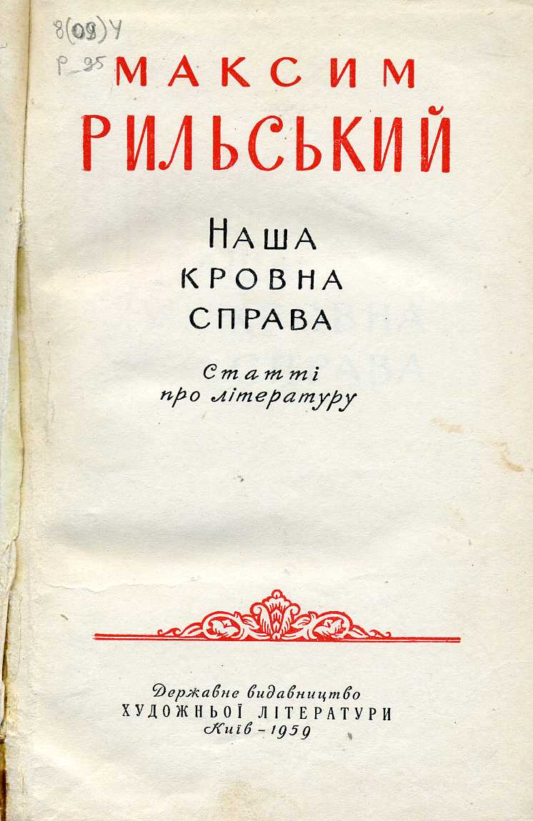 326. М. Т. Рильський : бібліогр. покажч. 1907–1965 / АН УРСР ; Центр. наук. б-ка ; уклад.: К. Є. Скокан ; відп. ред. С. А. Крижанівський. – Київ : Наук. думка, 1970. – 519 с.