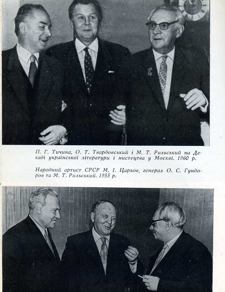 М. Т. Рильський – С. 14, 18, 20, 29, 35, 41, 42, 111, 126, 144, 153, 158, 225, (10, 17, 22, 32, 44, 46, 207–212.