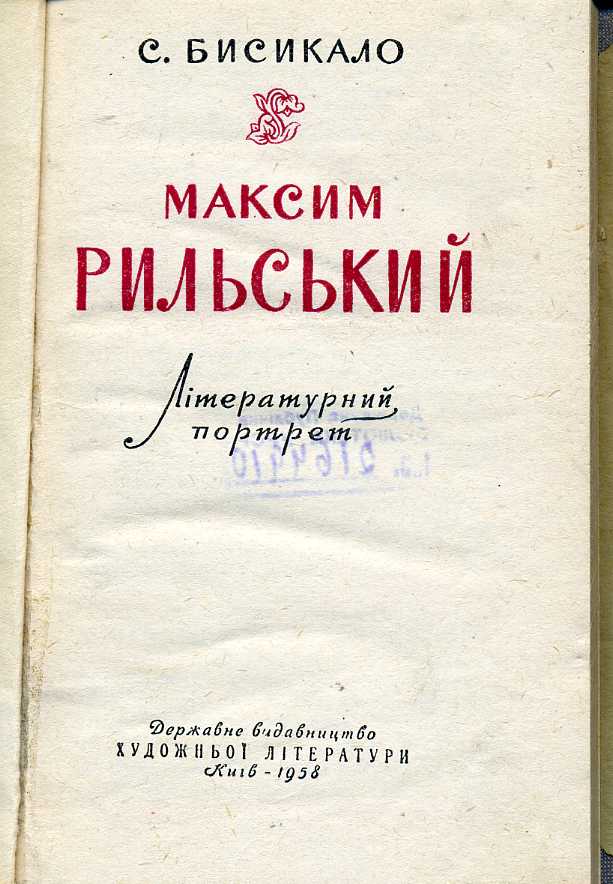 321. Рильський Максим Тадейович // Українські письменники : біобібліогр. слов. : в 5 т. / редкол.: О. І. Білецький (голова) [та ін.]. – Київ : Держлітвидав, 1965. – Т. 5 : Радянська література : Л–Я. – С. 358–391.