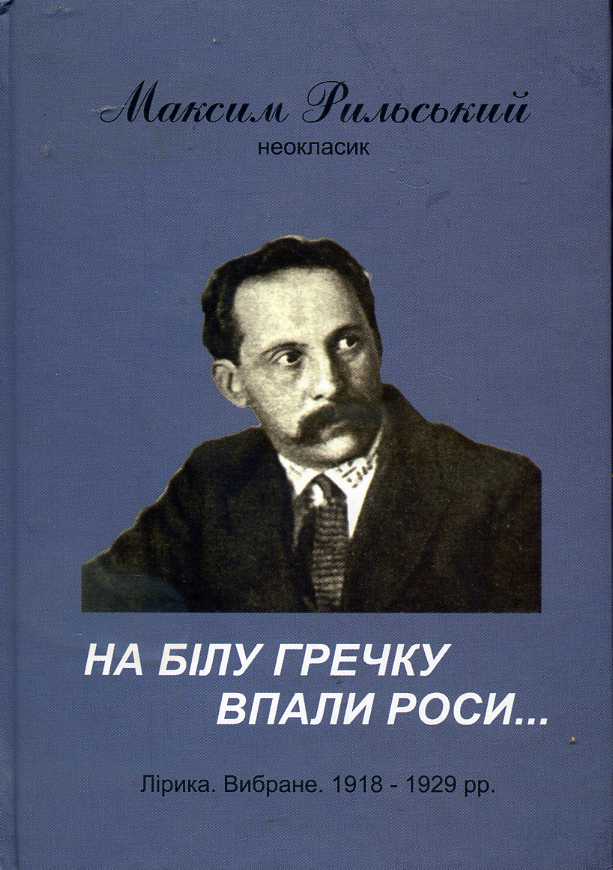 17. На білу гречку впали роси... : лірика, вибране (1918–1929 рр.) / М. Т. Рильський ; упоряд. М. Г. Рильський ; редкол.: Г. Т. Рубай [та ін.]. – Житомир : Котвицький В. Б. (вид.), 2015. – 238 с. : фот., іл. – (До 120-річчя М. Т. Рильського) (Проект фонду Максима Рильського «Троянди й виноград»).