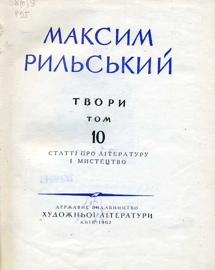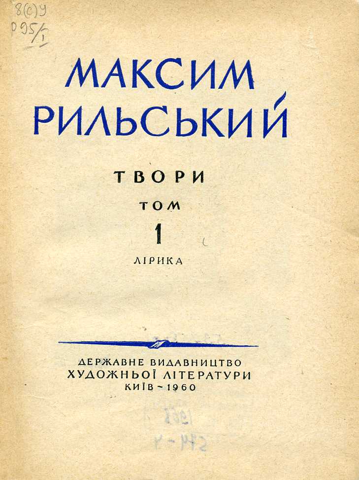 3. Твори : в 10 т. / М. Т. Рильський. – Київ : Держ. вид-во худож. літ., 1960–1962. – Т. 1–10.