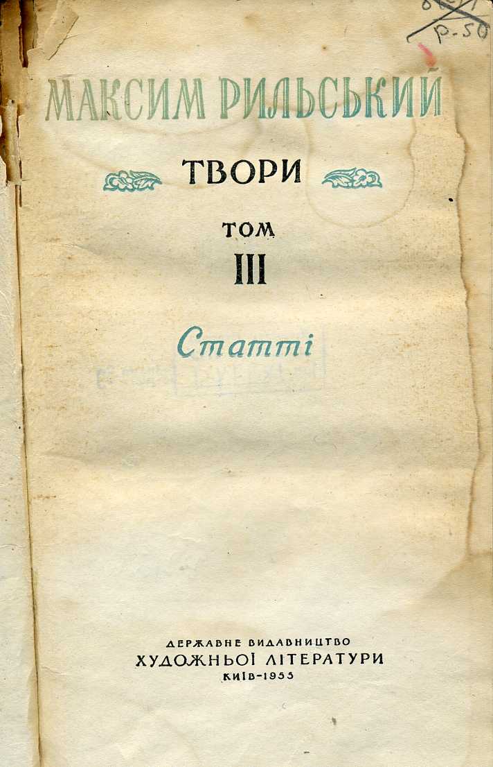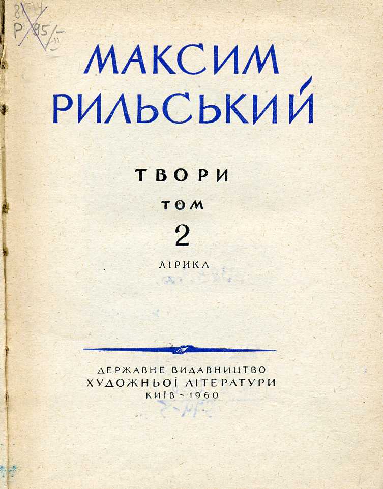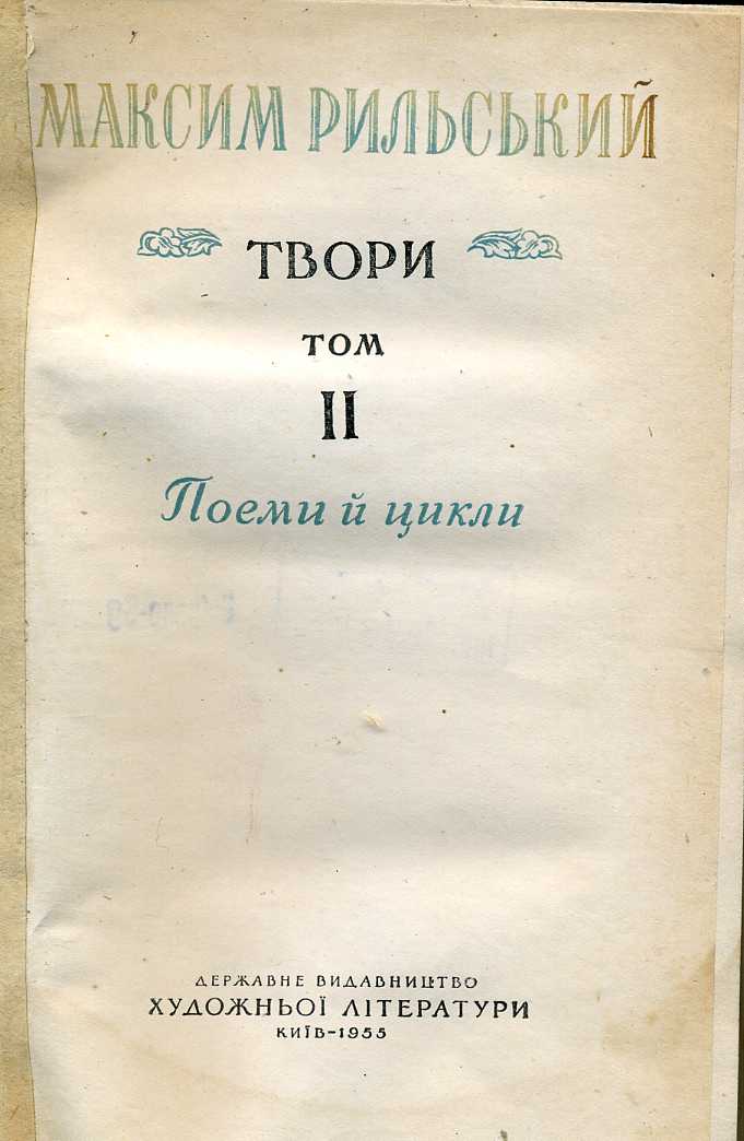 2. Твори : в 3 т. / М. Т. Рильський ; ред. О. Жолдак. – Київ : Держ. вид-во худож. літ., 1955