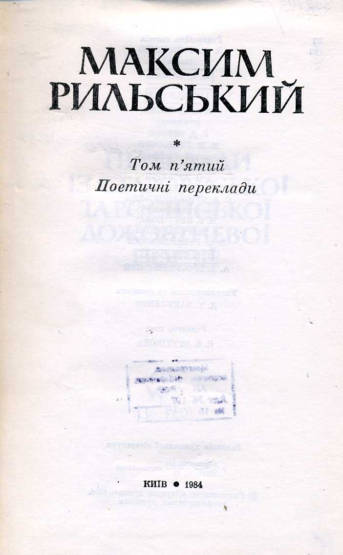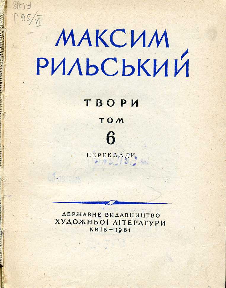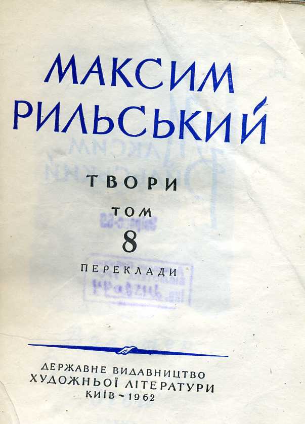 9. Вибрані переклади / М. Рильський ; ред. М. Терещенко. – Київ : Держ. вид-во худож. літ., 1952. – 323 с.