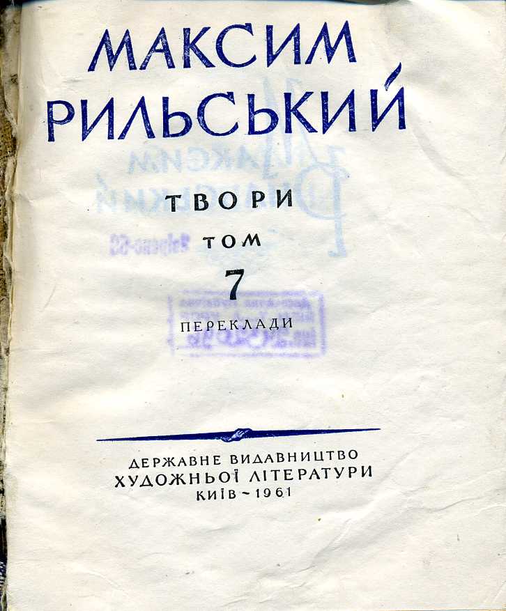 Т. 7 : Поетичні переклади / упоряд. та прим. Н. І. Чорна, Н. П. Чамата ; ред. тому Г. Д. Вервес. – 1985. – 379 с. : портр., 2 л. іл.
