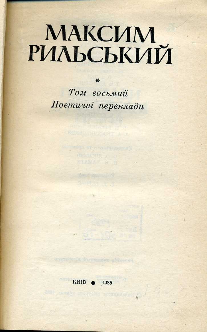 Т. 8 : Поетичні переклади / упоряд. та прим. О. О. Лисенко, Н. П. Чамата ; ред. тому Г. Д. Вервес. – 1985. – 327 с. : портр., 2 л. іл.
