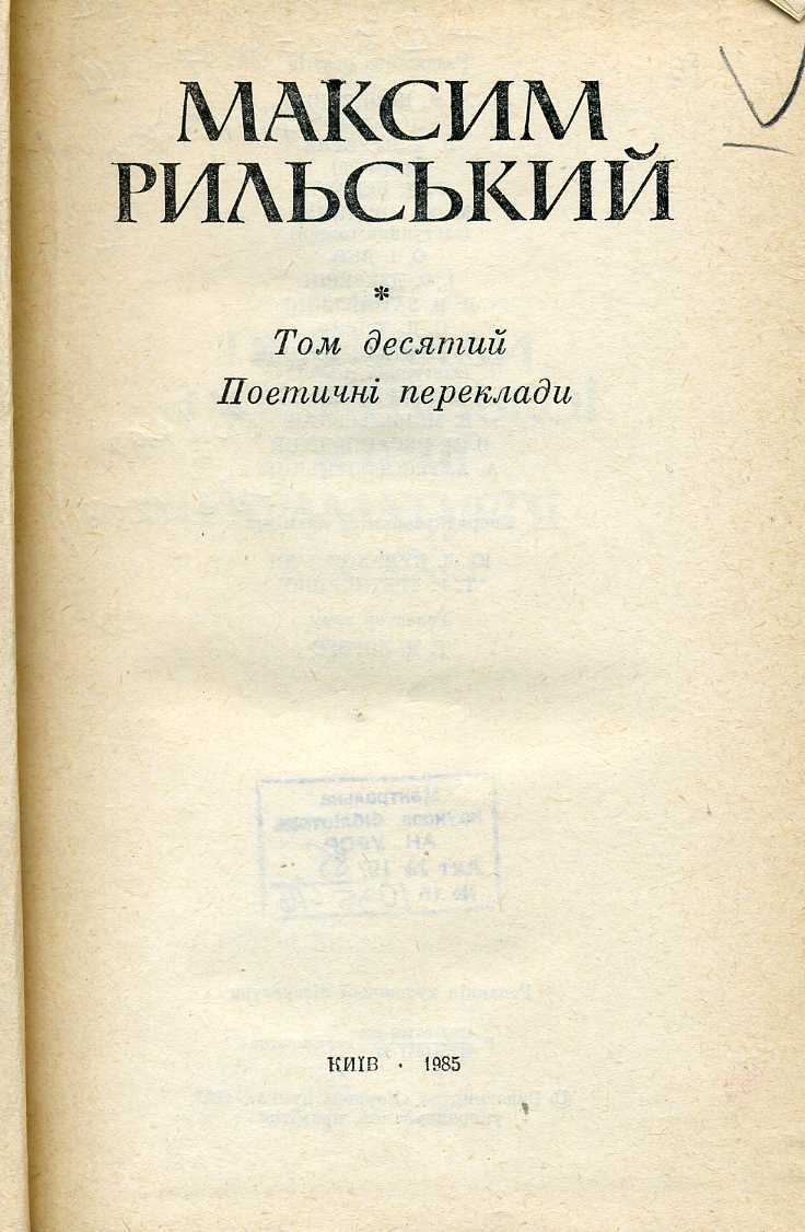 Т. 10 : Поетичні переклади / упоряд. та прим. Ю. Л. Булаховська, Т. Г. Третяченко ; ред. тому Г. Д. Вервес. – 1985. – 567 с. : портр., 2 л. іл.