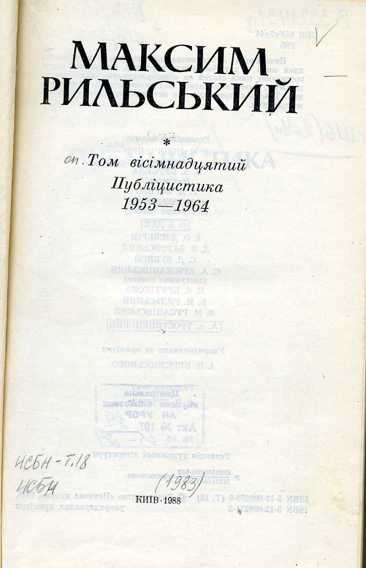 Т. 18 : Публіцистика 1953–1964 / упоряд. та прим. І. П. Березовського. – 1988. – 760 с. : портр.