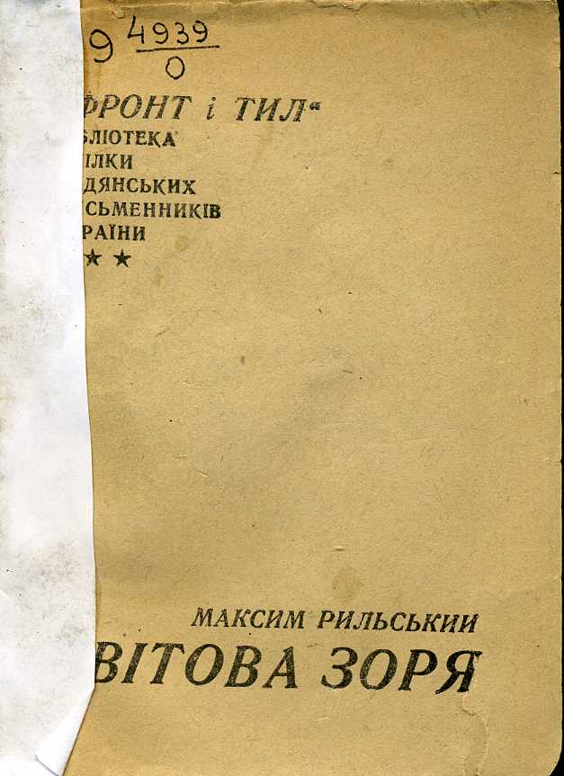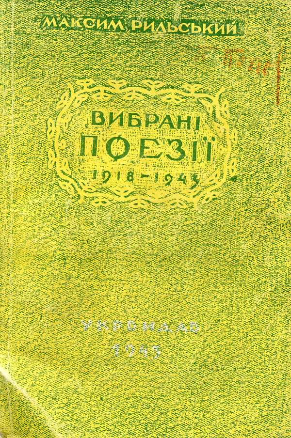 8. Вибрані поезії. 1918–1943 / Максим Рильський. – Б. м. : Укрвидав, 1943. – 202 с. : 1 л. портр., іл.