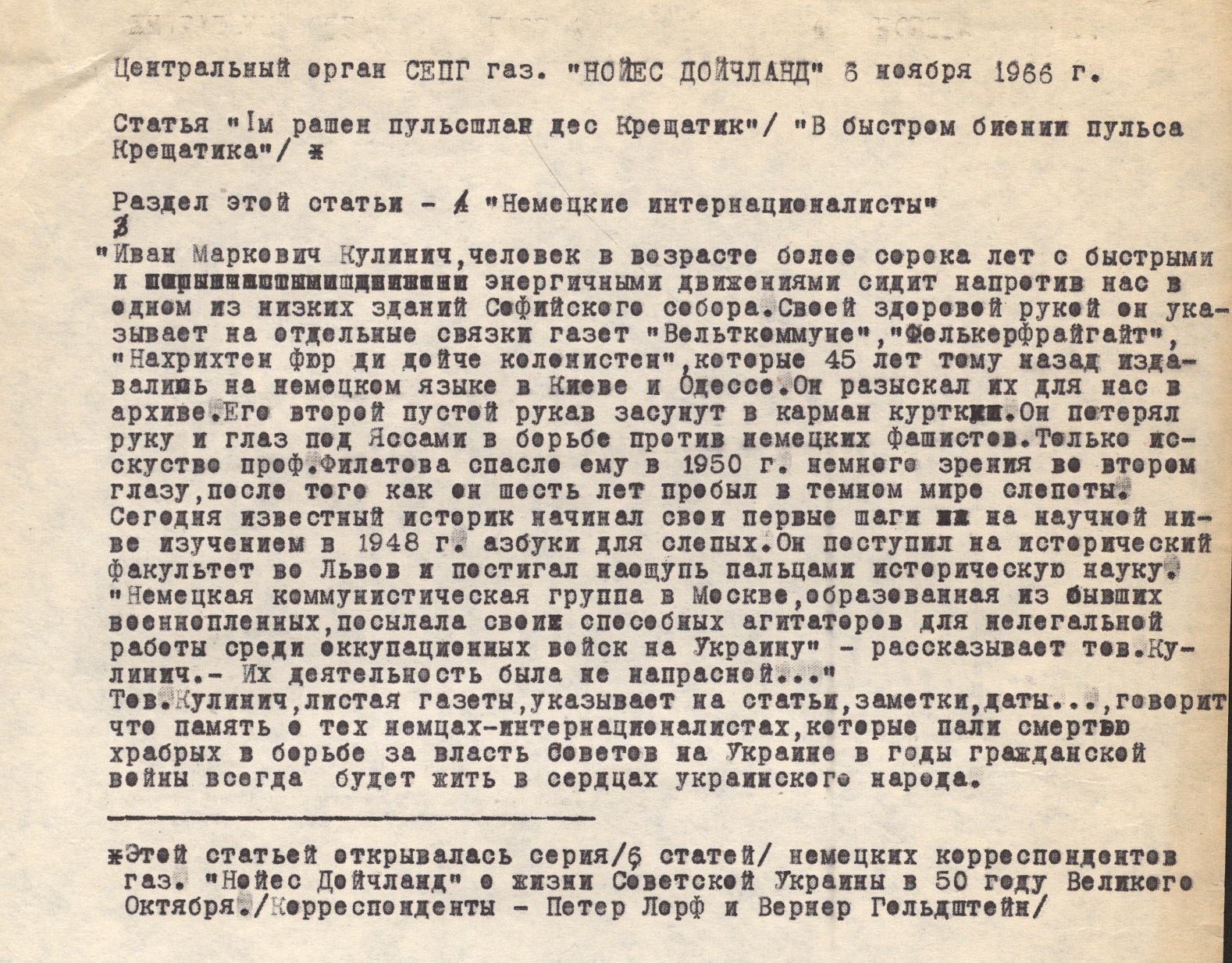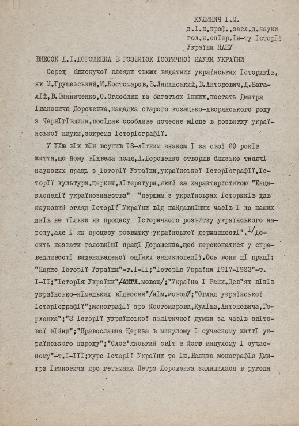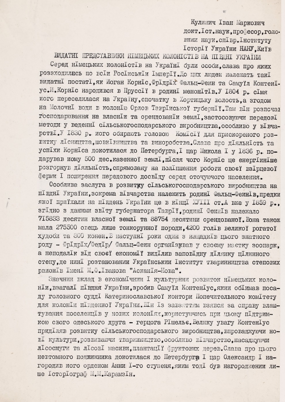 15 серпня 2024 року українська наукова громада відзначила поважну дату – 100-річчя від дня народження Івана Марковича Кулинича, видатного германіста, доктора історичних наук, професора Інституту історії НАН України. Роль Івана Марковича у формуванні української історичної германістики важко переоцінити. Його наукові студії, педагогічна діяльність, активна громадська робота, а також внесок в просування української гуманітарної науки надають йому заслуженого статусу одного з провідних діячів української історичної науки свого часу. Відомий своїми історико-культурними дослідженнями Німеччини, українсько-німецьких зав’язків, німецької громади України, Іван Кулинич започаткував чимало наукових напрямів у цій сфері, створив школу молодих учених та сприяв наведенню містків між українською та західноюєвропейською науками.