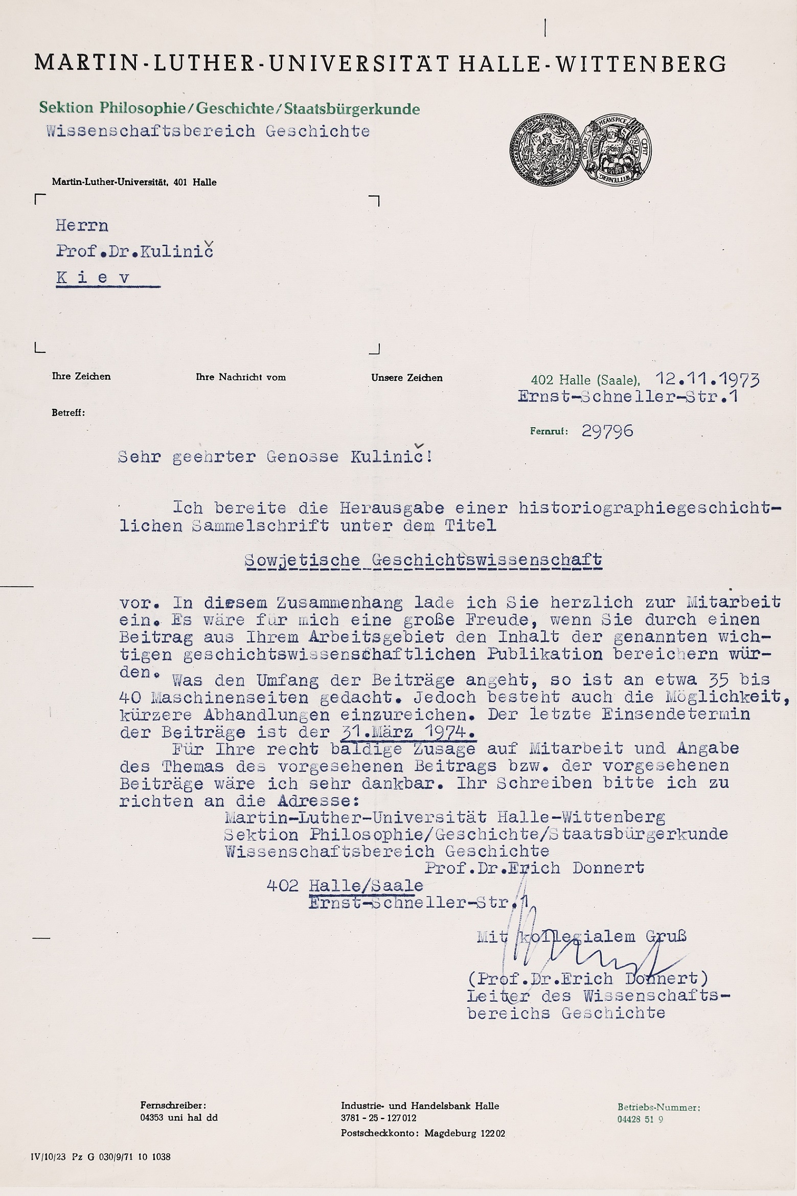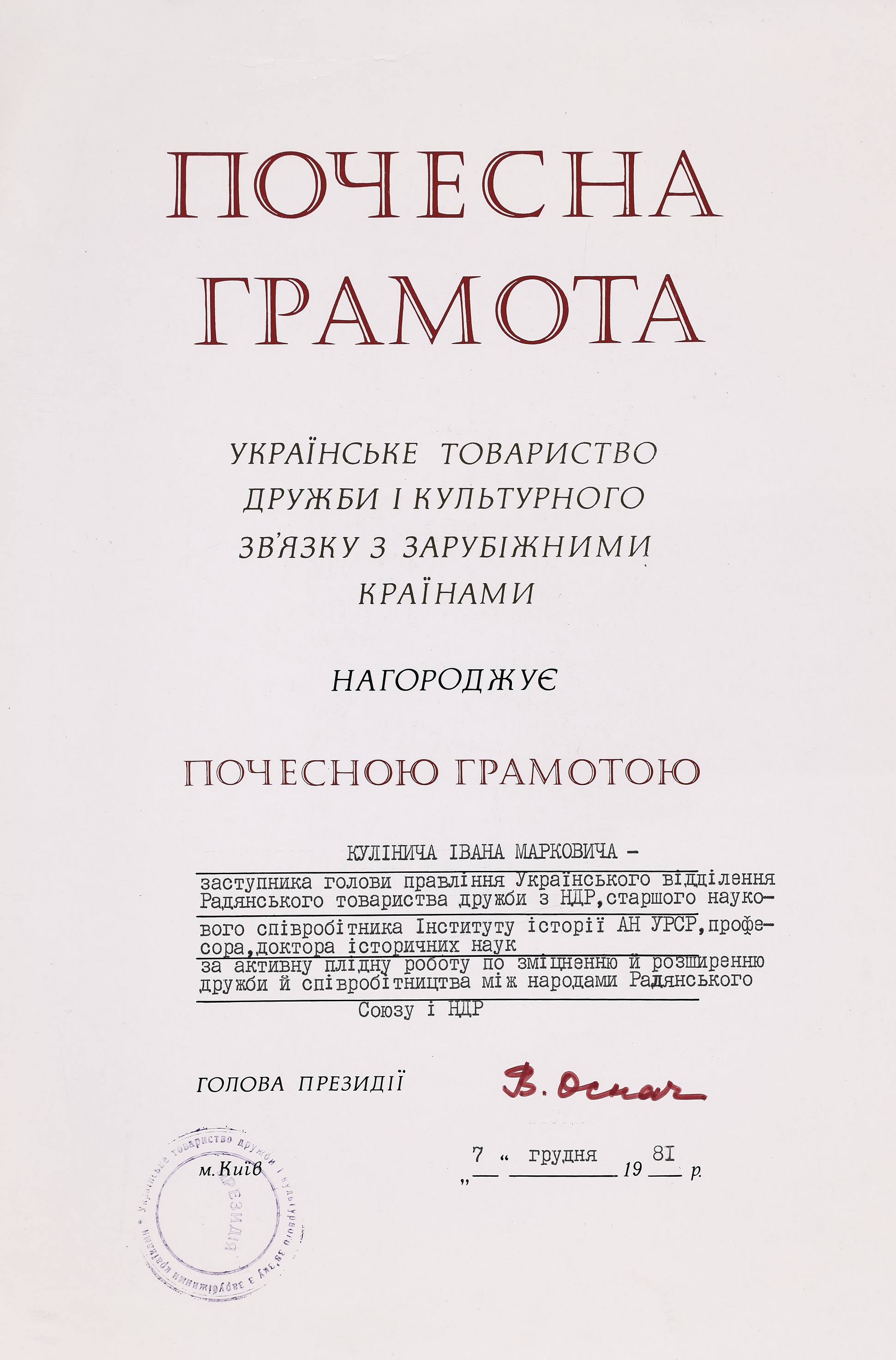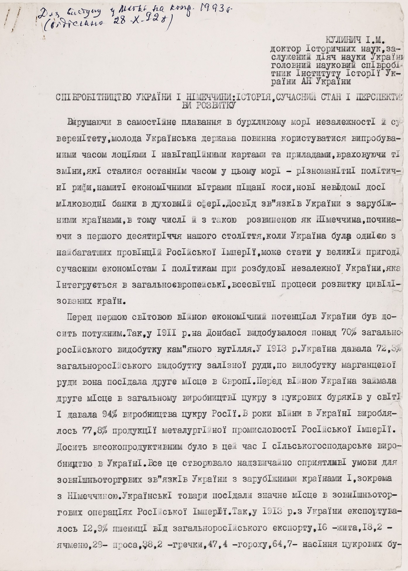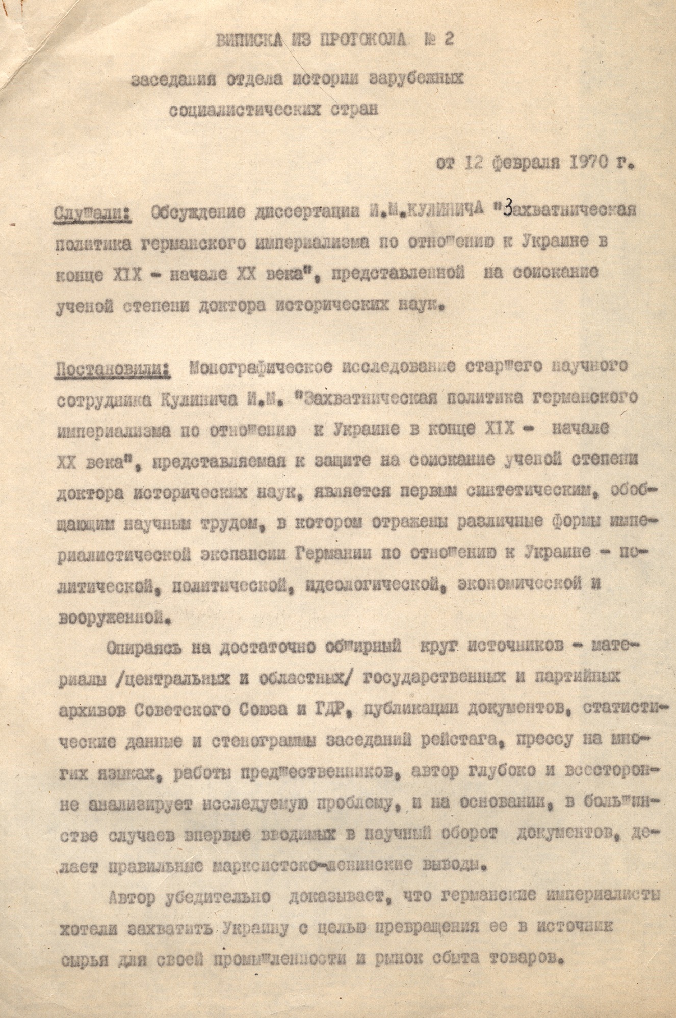 15 серпня 2024 року українська наукова громада відзначила поважну дату – 100-річчя від дня народження Івана Марковича Кулинича, видатного германіста, доктора історичних наук, професора Інституту історії НАН України. Роль Івана Марковича у формуванні української історичної германістики важко переоцінити. Його наукові студії, педагогічна діяльність, активна громадська робота, а також внесок в просування української гуманітарної науки надають йому заслуженого статусу одного з провідних діячів української історичної науки свого часу. Відомий своїми історико-культурними дослідженнями Німеччини, українсько-німецьких зав’язків, німецької громади України, Іван Кулинич започаткував чимало наукових напрямів у цій сфері, створив школу молодих учених та сприяв наведенню містків між українською та західноюєвропейською науками.