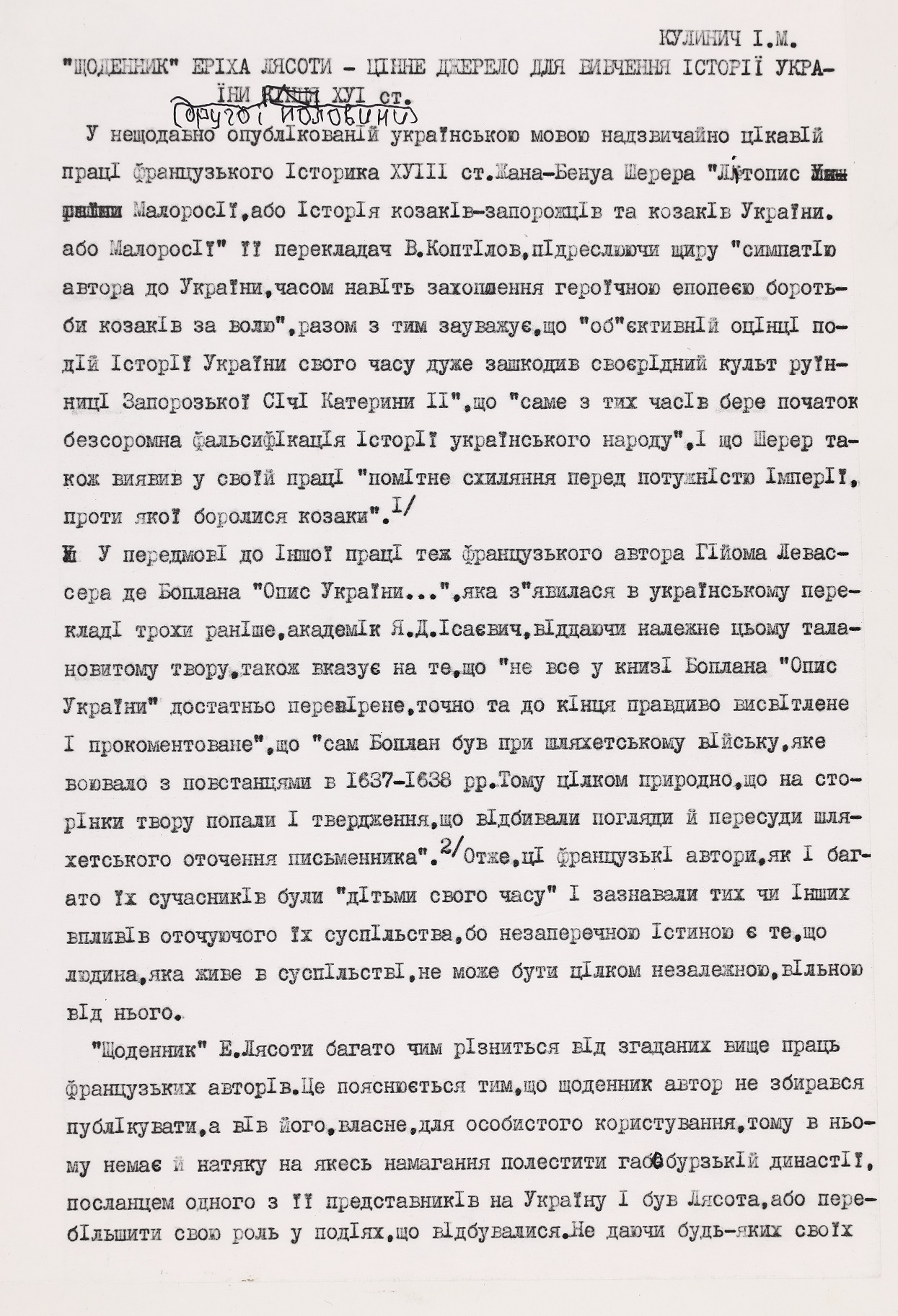 Особовий архівний фонд І.М. Кулинича (Ф. 412), який зберігається в Інституті рукопису Національної бібліотеки України імені В.І. Вернадського є винятково цінним. Він містить розлогий комплекс біографічних матеріалів, рукописів, наукових статей, листування з українськими та зарубіжними колегами. Серед його кореспондентів – провідні науковці України, НДР, СРСР, редактори наукових журналів, організатори міжнародних конференцій. У фонді також зберігається значний масив документів, що відображають громадську діяльність ученого.