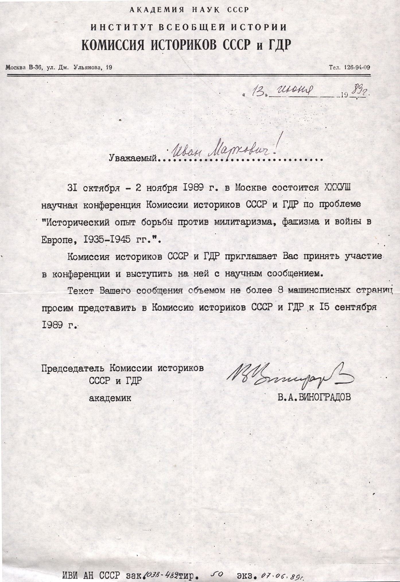 Подальше життя Івана Марковича було нерозривно пов’язане з Інститутом історії АН УРСР (нині – Інститут історії України НАН України). У 1958 році він захистив кандидатську дисертацію на тему становища робітничого класу Болгарії на початку ХХ ст., а в 1970 році – докторську дисертацію, присвячену агресивній політиці німецького імперіалізму щодо України наприкінці ХІХ – на початку ХХ ст. З 1961 року працював старшим науковим співробітником, а з 1986 року – головним науковим співробітником Інституту історії АН УРСР.