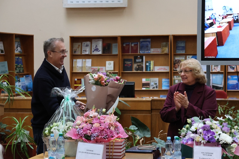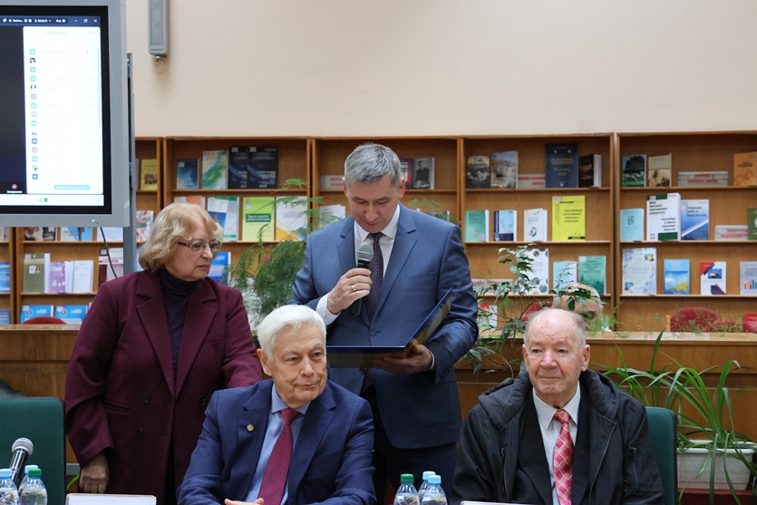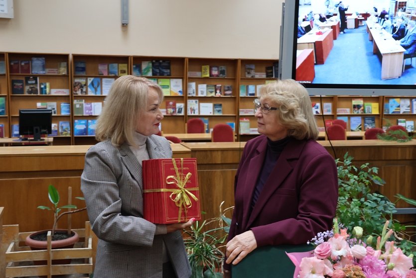 Почесний генеральний директор Національної бібліотеки України імені В.І. Вернадського, радник Президії Національної академії наук України, академік НАН України, заслужений діяч науки і техніки України Олексій Семенович Онищенко вручив Любові Андріївні адрес-вітання і грамоту Інформаційно-бібліотечної ради НАН України.