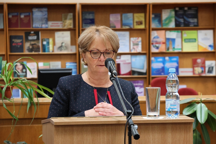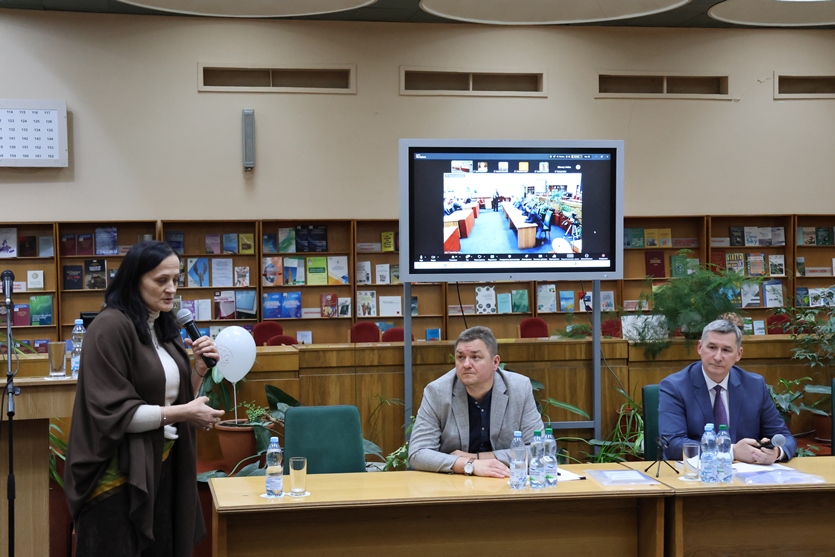 - Сьогоднішня наша подія, – зазначила вона, – йде одразу за Всеукраїнським днем бібліотек, тож ще й тому є важливою для нас, фактично це дні нових знань. Адже Бібліотека як явище – це базис розвитку наукового знання, базис натхнення, культури. Це не лише комунікаційний засіб, а явище яке належить усьому світові. Бібліотеки – це всесвіт, тому я дуже рада, що сьогодні ми можемо об’єднатися в нашій справі, визначити точки прикладання сил у непростих умовах, інноваційно рухати цей всесвіт. А також професійно спілкуватись, що є надзвичайно важливим. А завдяки великим досягненням науки учасники конференції, які не змогли приїхати, мають можливість спілкуватись онлайн у відеоформаті.