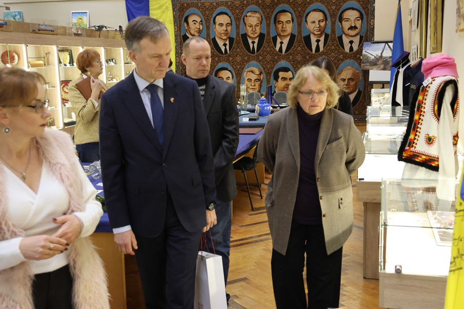 Вона розповіла гостю про діяльність НБУВ як наукового, інформаційного й культурно-просвітницького центру країни, про роботу підрозділів Бібліотеки, охарактеризувала вагому й надзвичайно цінну історичну спадщину, яка міститься у фондах НБУВ, окремо акцентувала на значній підтримці й допомозі зарубіжних колег та міжнародних організацій, яку вони демонструють у важкий для України час російської агресії.